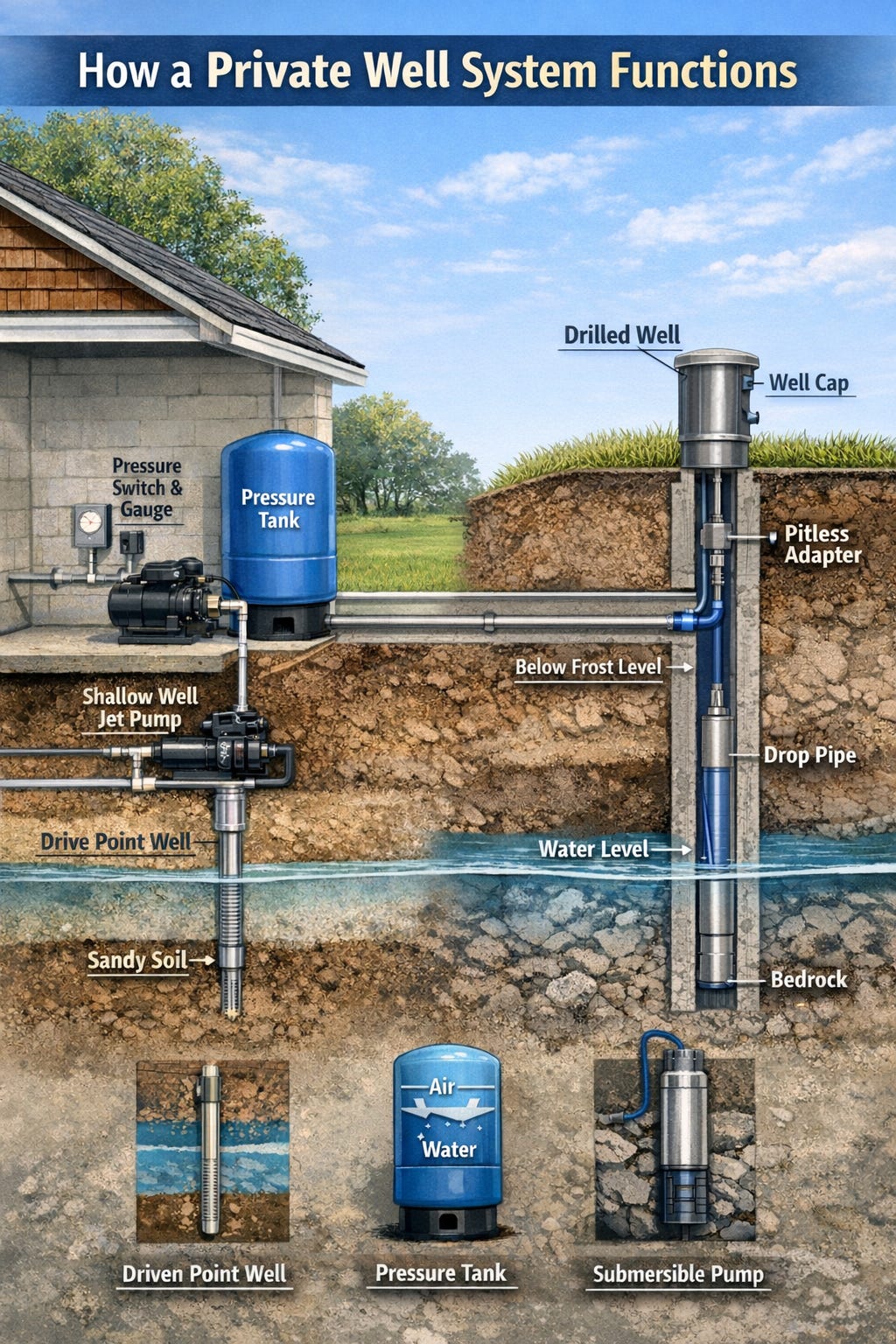 When properly installed and maintained, a private well can provide decades of reliable, clean water. But like any mechanical system, understanding how it works is the first step in protecting it.