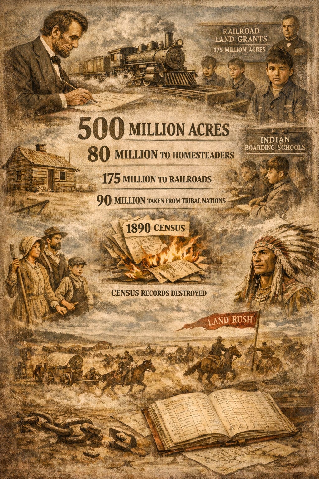 The law was written with loopholes. Enforcement was underfunded. Land was declared “surplus.” Children were removed. Records disappeared. And 420 million acres—84% of the total—went not to families but to corporations, speculators, and institutions that still hold much of it today.